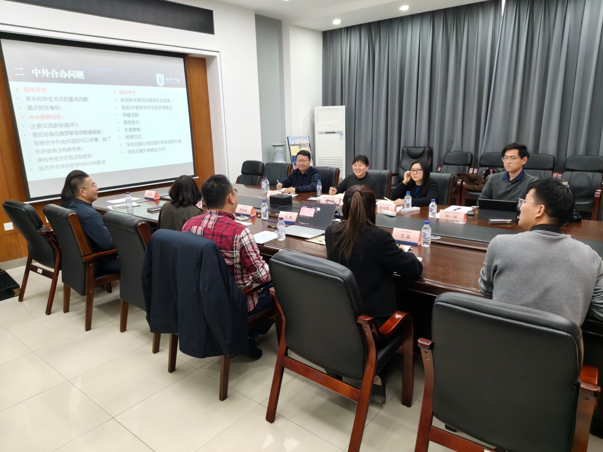 在交流环节,双方围绕中外合作办学的招生策略、培养方案设计、师资配备、学生管理等具体问题进行了深入研讨。阚彩侠一行详细了解了吉大物理与俄罗斯托木斯克理工大学合作办学项目的运行情况,特别是中俄双方课程体系的对接、学生派出、毕业审核学位授予流程等关键环节的实践经验。银河娱乐城 重点分享了中外合作办学项目在保障学生培养质量、协调中外教学模式等方面的具体做法。此外,阚彩侠一行还介绍了南航在外籍教师引进、国际合作项目申报、学生升学就业等方面的探索与思考,双方就此进行了深入交流。