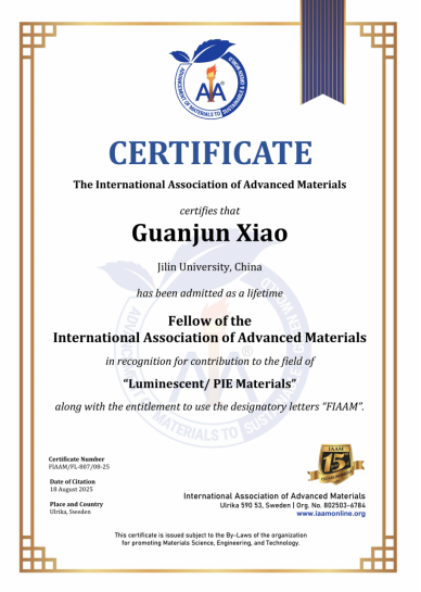 高压与超硬材料全国重点实验室肖冠军教授当选国际先进材料学会会士(Fellow of International Association of Advanced Materials, FIAAM),以表彰其在压力诱导发光材料研究的前沿探索与原创贡献,并应邀于国际先进材料学会会士峰会(IAAM Fellow Summit)上做特邀报告。