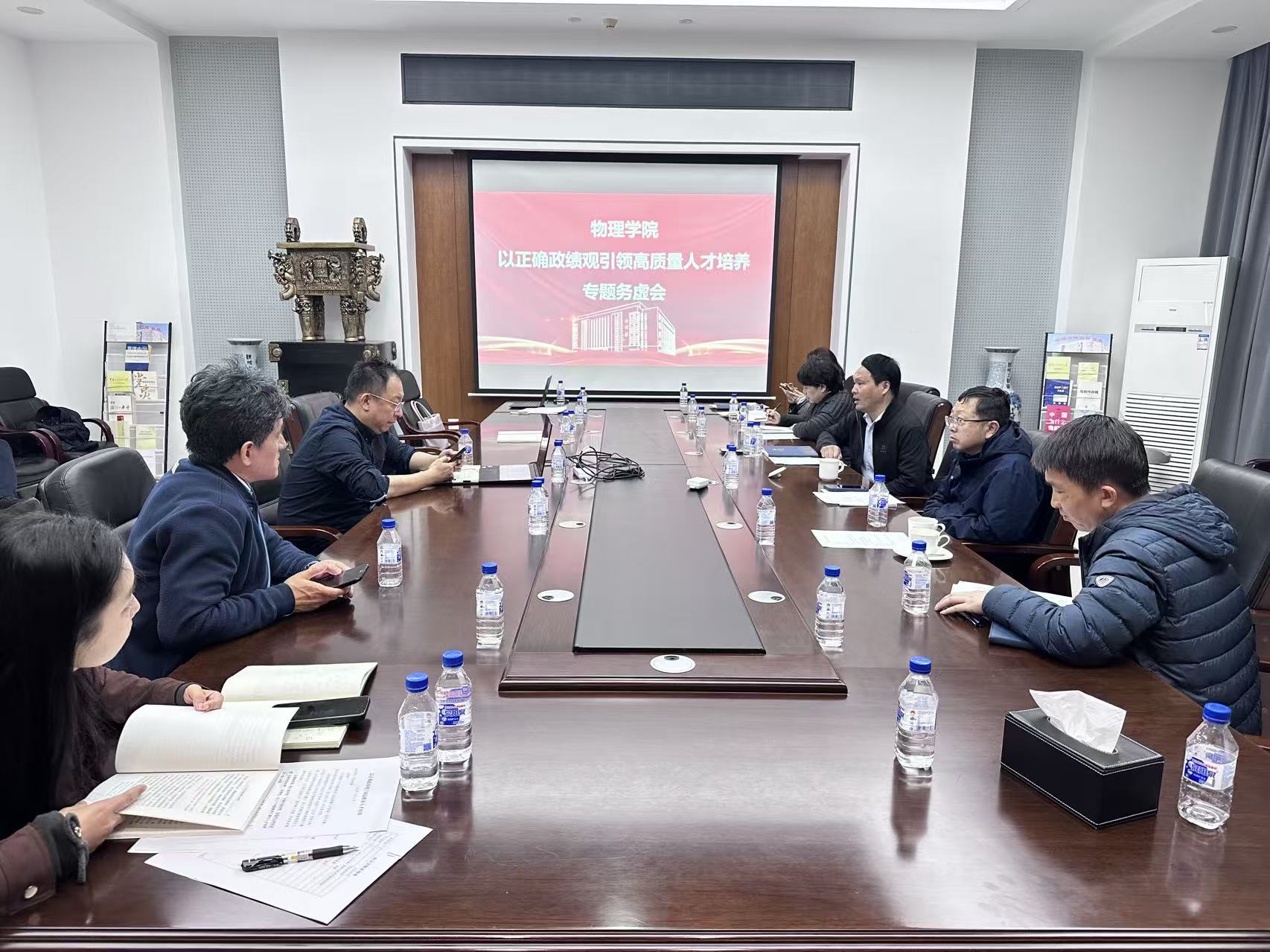 在物理楼301会议室召开2026年工作务虚会。会议以“以正确政绩观引领高质量人才培养”为主题,聚焦本科人才培养方案修订、课程体系优化与教育教学改革展开深入研讨。学校原常务副校长陈岗、学校教学委员会主任张汉壮、学校党建联络员刘卓,银河娱乐城